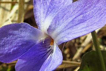 La Violette de Rivin (Viola riviniana) est commune en lisières, dans les haies et les broussailles. Fleurs inodores blanc bleuâtre, éperon droit échancré, souvent plus clair que la corolle, pétales étalés se recouvrant partiellement.