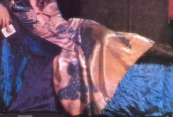 Etant lui-même filiforme et très fin de visage, il épouse dès lors la garde-robe de sa femme et s'affiche les cheveux très longs et en robe.