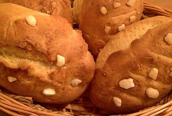 Délayer la levure dans le lait tiède, et verser dans la cuve du robot. Ajouter les autres ingrédients et pétrir jusqu'à l'obtention d'une pâte homogène. Former de petites boules et les laisser lever 1h30 à l'abri des courant d'air.