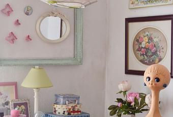 commode chinée sur Le bon coin et relookée en pastels,cadres et objets divers chinés eux aussi