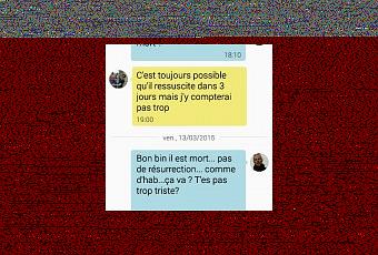 Terribles heures de requêtes exclusives sur LEBONCOIN sous la pression permanente de Gaspard et l'œil accusateur de sa mère pour enfin trouver la perle un chaton Chartreux qui naquit il y a quelques semaines en douce Charente-Maritime. J'appelle la dame on s'accorde sur un mâle c'est réservé. Mais il était dit que le destin s'acharnerait sur le petit chaton qui n'aura pas la chance de nous avoir comme maîtres. Si ça se trouve ça lui sauve la vie. Magnifique message de désolation de l'éleveuse sur mon répondeur, mamie Nova inside, ma grande bonté m'invite à le partager avec vous. Pour coller à la réalité, installez-vous dans votre lit et imaginez que vous écoutez ce message au terme d'une folle semaine qui a coûté la vie au chaton Bowie et une vingtaine de litres de larmes à la famille. Je m'apprêtais à lire Charlie Hebdo.