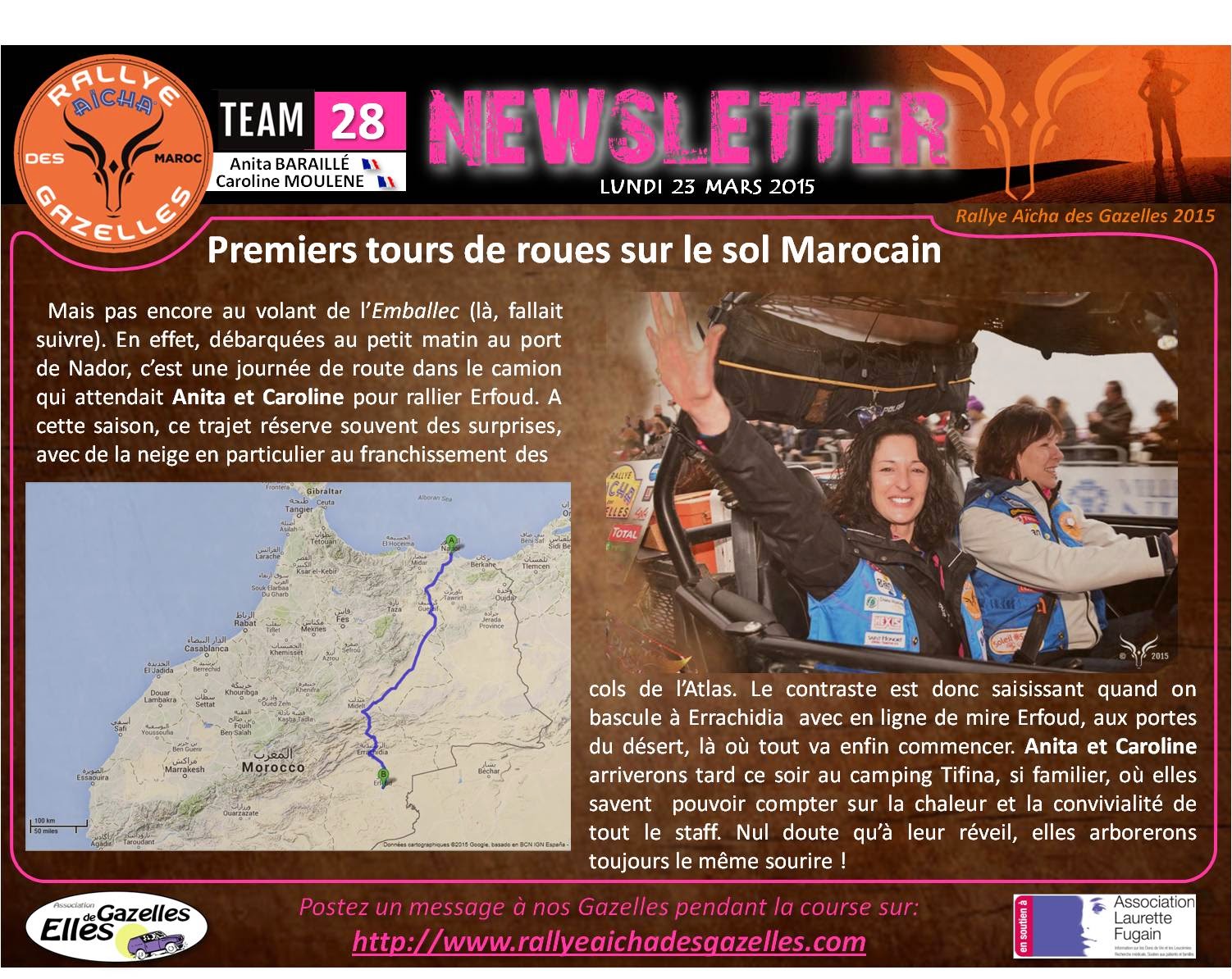 - Retrouvez toutes les informations sur le site officiel du rallye http://www.rallyeaichadesgazelles.com/