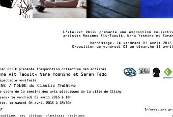 ROXANNE AIT TAOUIT, SARAH TEDO (SAND WHALE), NANA YOSHINO vous invitent au vernissage de la prochaine exposition "Soupçon" le vendredi 03 avril 2015 à partir de 18h00.Lieu : Atelier Oblik , 19 rue Emile Roux (Clichy La Garenne - 92).