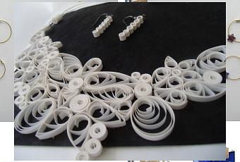 " Pour les bijoux unis, il suffit de préciser les tons ou de me fournir un échantillon de la couleur désirée. Pour les modèles faits de papiers décorés, il faut me donner une gamme de couleurs et s'attendre à une part de surprise ".