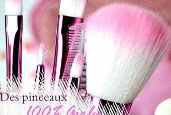 Les 8 pinceaux de ce kit se présentent dans un étui en tissu, rose lui aussi bien entendu ! La matière est assez rigide et sent fort le plastique mais ça va, elle a l'air assez costaude.