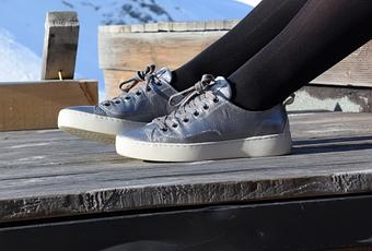 On y trouve un marge choix de baskets, boots dont cette paire façon métallisée