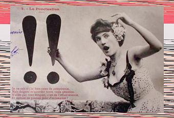Bon, passons rapidement sur le point qui termine une phrase, le point d'exclamation qui se place en fin de phrase exclamative, et la phrase interrogative qui s'achève par un point d'interrogation ; de même, on ne s'attardera pas sur les deux-points qui précèdent les explications ; pareil pour les points de suspension, qui marquent une suppression, une interruption ou un sous-entendu.