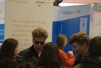 Je suis arrivé au Salon dimanche après-midi. Je m’étais inscrit au Speed Dating Amazon. Comme l’année dernière, le principe était le même, à savoir présenter son livre à un jury en cinq minutes. Les meilleurs « projets » bénéficient d’une campagne de promotion organisée par Amazon, autant dire un sacré jackpot pour un auteur indé en quête de visibilité. Avec 55 participants et beaucoup de monde au stand, ce rendez-vous a été un très grand succès. Amazon a fait appel aux frères Bogdanov qui ont assuré le show et qui se sont montrés très pros. En attendant mon tour, j’engage la conversation avec les auteurs autour de moi et réalise que Catherine Lang et Charlie Bregman sont présents ! J’avais échangé avec eux sur Facebook mais c’était la première fois que je les rencontrais IRL comme disent les geeks (IRL = in real life, dans la « vraie vie »). J’ai été très heureux de faire leur connaissance.