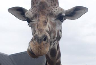 J’aurais pu choisir parmi la foultitude de portraits de vaches, ou les photos de la chatte, dans des positions abracadabrantes, une patte dans l’oreille et la tête en bas, ou encore tous les chevreaux, agneaux et autres canards…mais c’etait prévisible. Alors, voilà une des girafes (c’est peut être un monsieur girafe, je ne sais pas) du zoo de Colchester, on sent de suite qu’elle a des choses à dire, cette brave bête.