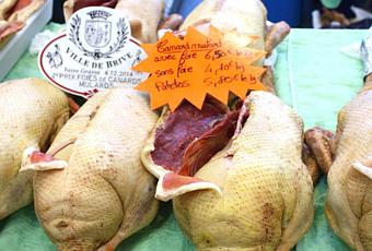 Ces jours–là, ce sont les oies et les canards mulards et de barbarie, les stars de la fête. Les éleveurs de la région présentent leurs plus belles volailles. Bêtes entières avec leur foie bien gras, magrets, peaux, carcasses, cous, rillettes, tout se mange et tout est bon pour diverses utilisations. On regarde, on va de petits stands à de simples tréteaux dressés, on écoute les commentaires, les bavardages, les appréciations, l’on compare les prix et on commence à remplir le panier.