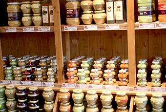 On trouve les produits des Terres Rouges, dont la violette bien sûr, dans une belle boutique du cœur de la ville avec un grand choix d’autres parfums de moutarde ainsi que la Salers, distillé aux Terres Rouges. Indispensable.