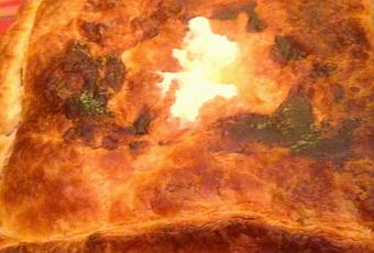Terminer avec quelques cuillerées de crème fraiche.Recouvrir avec la seconde pâte dans laquelle vous aurez découpé un carré à l'exacte mesure du plat.