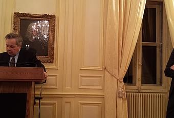 Après une brève présentation de Philippe Nemo par Pierre Bessard, directeur de l'Institut Libéral, l'auteur d'Esthétique de la liberté commence sa conférence sur La beauté d'une société libre.