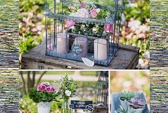 Voici ce qu’elle m’a inspiré… j’ai repris un échantillon des couleurs, le grillage et la dentelle du pot…