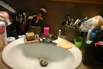 Je sais que souvent, on dit que l'humidité et la chaleur de la salle de bain ne sont pas conseillées pour le make-up mais je n'ai que cette solution pour le moment.