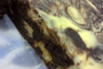 3.Versez les 3/4 de la pâte du brownie dans un moule. Versez la pâte du cheesecake par dessus et recouvrir avec le restant de pâte au chocolat.