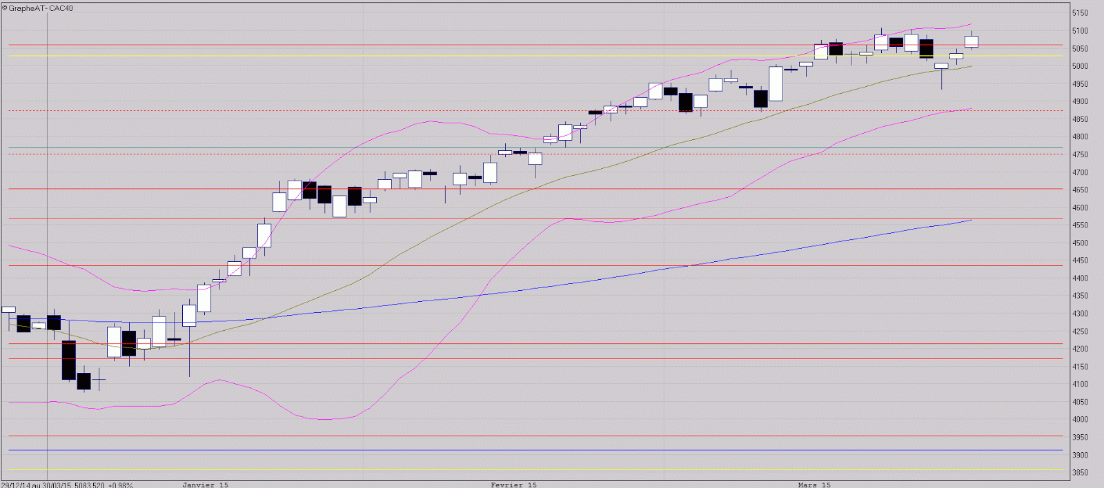 Malgré cela, le marché reste dans l'attente de la correction de la hausse de ce 1er trimestre; il faudra vraisemblablement patienter avec la prochaine phase de hausse qui devrait l'emmener progressivement dans la zone des 5140 points à 5200 points.