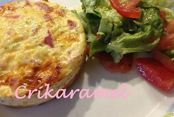 Découpez les tranches de pain de mie grillées avec le découpoir 9,5 cm et placez un rond de pain dans le fond de chaque empreinte. Remplissez-les ensuite avec la préparation au fromage et faites cuire 20 minutes à 180°C.