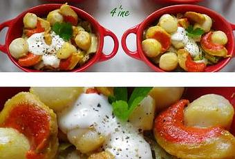 Décongéler les St Jacques à température ambiante puis les faire dorer 2 à 3 minutes dans une poêle huilée