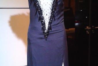 Une pièce unique du designer Donna Karan, qui a nécessité quelques 23 couturières pour y coudre les 2600 cristaux Swarovski parant la robe de mille lumières.