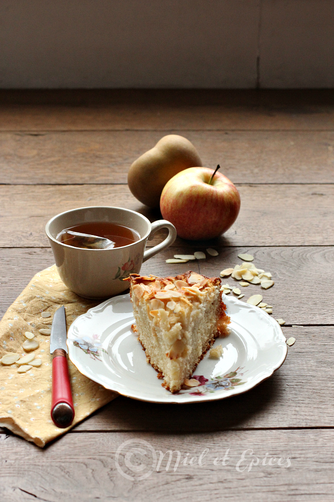 Déposer les lamelles de pommes en décorant selon votre choix et parsemer de lamelles d'amandes