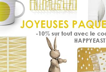Valid until Mon 6th of April 2015 incl, gift vouchers excluded. On fête Pâques avec -10% sur toute la boutique avec le code HAPPYEASTER! Valable jusqu'à lun 6 avril 2015 inclus, chèques cadeaux exclus.
