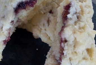 Prendre une boule de pâte dans la main et l'applatir. Déposer au centre un "morceau" de confiture (quantité déposée dans l'un des emplacements) et refermer la pâte sur la confiture. La travailler délicatement de sorte à ce que la confiture soit bien emprisonnée dans la pâte sablée.