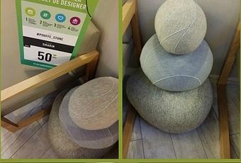 Notre choix s'est orienté vers la table au pied palmé, même si on a beaucoup aimé le pouf galet aussi, peut-être nos habitudes sur les plages normandes. La chaise est bien entendu très belle, mais ce n'est pas une chaise qui nous manque.