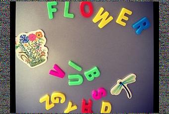 Sur mon frigo, des lettres aimantées, pour écrire des petits mots, pour qu'ils jouent pendant que je cuisine,