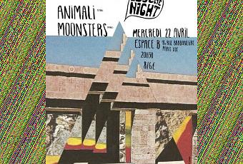 Quel lien entre les deux ? A ce jour, aucun. Mais l’idée d’associer les deux groupes est presque aussi immédiate que les coups de coeur énoncés précédemment. Je fais écouter Moonsters à Gourmets Recordingz, ils adorent. Idem pour Moonsters envers Animali. En quelques minutes, l’idée commence à germer quand soudain… la notification tombe : Animali est programmé en concert à l’Espace B.