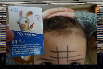 Le défi du cowboy consiste à fabriquer une boulette en papier et la lancer le plus vite possible sur son adversaire. Vous jouerez sans doute également au jeu du morpion : jeu simple et connu de tous mais le but est de jouer contre un adversaire sur le front d’une victime en fabriquant une grille grâce au maquillage. Par exemple nous avons dessiné sur le front de ma fille