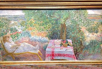 Panneaux décoratifs de commande pour de grands appartements d’amateurs éclairés, autoportraits sans concession, nus féminins plein d’abandon, fusion de couleurs et de formes … Pierre Bonnard (1867 – 1947) est classé parmi les Nabis (comme ses amis de l'Académie Julian : Maurice Denis, Edouard Vuillard, Paul Sérusier, Paul Ranson, Félix Vallotton) mais il fuyait les théories et les archétypes. Il peint la nature vue d’une fenêtre, enchâssée dans un jardin, explosant dans un buisson de mimosas, mais aussi des soirées silencieuses sous la lampe … Il peint celle qui fut longtemps sa compagne, Marthe de Méligny (dans le civil : Maria Boursin) qu’il finit par épouser en 1925, et aussi, et parfois ensemble, sa maîtresse Renée avec laquelle il voyage en Italie et qui se suicide peu de temps après ce mariage.
