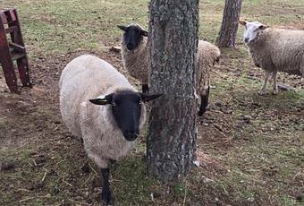 25 km de marche dans le Forez. Ça fait mal aux jambes. Mais on fait de jolies rencontres. Comme ce mouton blanc à la tête noire.Moutons bicolores