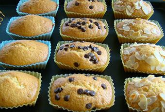 Recette : Préchauffer le four à 180° – Mélanger le sucre avec les œufs – Battre jusqu’à ce que le mélange blanchisse – Ajouter l’huile – Battre – Ajouter le jus d’orange – Battre – Ajouter farine + levure + sucre vanillé – Battre – Verser dans des petits moules – Ajouter des pépites de chocolat et des amandes effilées – Enfourner pendant une vingtaine de minutes.