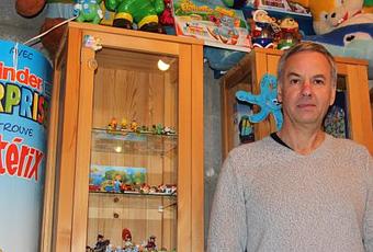Laurent aime les surprises. À 57 ans, ce père de famille nourrit une véritable passion pour celles nichées au cœur des célèbres œufs Kinder. Il a même transformé son garage à Joué-sur-Erdre en un musée personnel : son « Kinderland ». C’est un vrai boulimique. Il collectionne tout : affichettes, emballages, œufs de présentation gonflables, présentoirs et bien sûr les célèbres figurines : Astérix et Obélix, Schtroumpf, Hippos ou encore Panthère Rose… Sa collection rassemble aujourd’hui plusieurs milliers de références.
