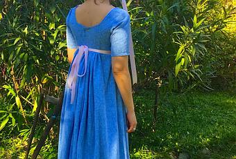 Une robe regency bleue que vous ne connaissiez pas encore pour la bonne raison que je ne l'avais jamais mise ! Elle était destinée à Venise à la base, jusqu'à ce que je change d'avis et que je veuille faire une robe blanche.