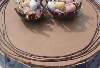 Cette année pour Pâques, j'ai eu envie d'un gâteau vanille chocolat. J'ai donc fait un bavarois avec un fond de dacquoise aux amandes. Ce gâteau est parfait après un repas copieux car assez léger.