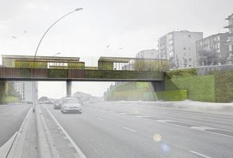 Situé au dessus d'un périphérique proche de la capitale catalane, le pont Sarajevo ne se traverse aujourd'hui qu'au prix d'un grand bol d’air pollué dans les bronches. Peut-être plus pour longtemps. Afin de rendre l'endroit plus fréquentable et, mieux, d'en faire un véritable lieu de vie, la mairie de Barcelone et le cabinet d'architectesBCQ ont présenté un projet ambitieux : reconstruire ce pont avec un nouveau type de béton capable d'absorber la pollution, puis le recouvrir de verdure.