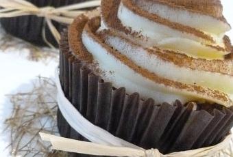 Mélanger le mascarpone au sucre glace puis, à l'aide d'une poche à douille cannelée, recouvrir chaque cupcake. Saupoudrer de cacao amer.