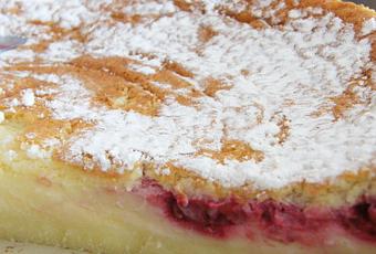 Je vous propose une version gourmande du célèbre gâteau magique, avec des framboises et du chocolat blanc.