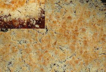 Répartir le crumble sur les poires en l'émiettant du bout des doigts, puis faire cuire le tout à 180 °C pendant 20 min.