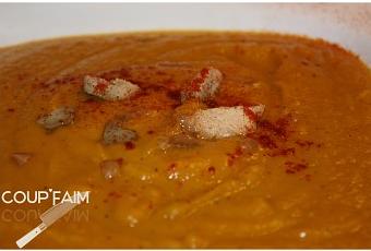 Au moment de servir, versez le velouté dans une assiette et parsemez quelques morceaux de foie gras de la tranche restante, saupoudrer d'un peu de paprika et servez sans attendre ...