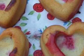 Remplissez les moules à moitié, déposez les framboises puis recouvrez avec le reste de pâte.
