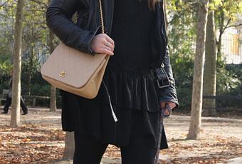 Perfecto : Zara, Robe : Manoush, Chaussures : Vivienne Westwood, Sac : Chanel, Chapeau : Vintage, Bagues : Ferret, Fred.