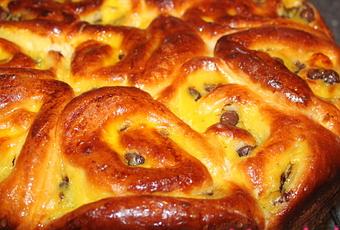 La recette peut également se faire avec des raisins secs à la place des pépites de chocolat c'est très bon aussi, il suffit de les rehydrater une heure avant dans de l'eau puis de les mettre égouttés sur la creme pâtissière.