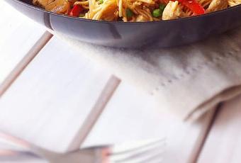 Pour ma part j'ai fait un mélange de poulet petit pois et poivrons rouge.