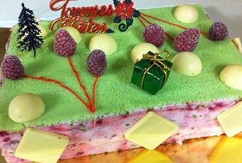 Les fêtes sont terminées et pour ma part elles ont été un moment de joie avec toute ma petite famille mais aussi un moment de panique avec un grand-père de 86 ans malade, un appel à SOS Médecin et cinq personnes malades en même temps. On a réussi à gérer tout ce stress et finalement tout c'est très bien passé. Toute ma tribu a aimé se retrouver dans notre nouvelle maison et s'y est senti très bien ce qui m'a réchauffé le coeur. Vous aurez compris que cette année s'est terminée sur les chapeaux de roues et que je n'ai pas pu vous donner les recettes de mes desserts de fêtes avant aujourd'hui. La maison étant redevenue calme voici les recettes de ce Noël 2014 avec tout d'abord le dessert du réveillon un entremets pistache framboise.