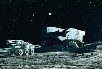 En dehors de la station, l’univers lunaire est un prolongement de l’emprisonnement dans la station. Sam y a l’illusion du contrôle : réparer les machines défaillantes, s’affirmer comme leur maître ; mais ces machines avancent en réalité sans pilote et leurs immenses structures glaciales en métal renforcent la solitude de Sam. Alors que l’intérieur de la station est animé par la présence du robot-assistant Gerty, celui-ci ne peut en sortir et Sam évolue seul sur la planète sombre, vide et poussiéreuse. Tout comme les machines sont sous contrôle des ordres informatisés de Sam, il est sous le contrôle de l’entreprise Lunar pour laquelle il travaille. Cette emprise sur sa personne est paradoxalement plus explicite à l’extérieur qu’à l’intérieur de la station. En effet, le périmètre appartenant à l’entreprise est strictement délimité et indiqué à Sam par des alarmes, mais il cache en plus des brouilleurs de satellite qui empêchent Sam d’être en liaison vidéo directe avec la Terre.