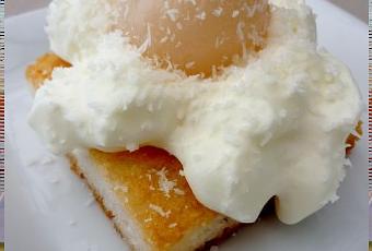 Ajoutez un pincée de sel aux blancs d'œuf et montez en neige à l'aide du batteur électrique. Versez ensuite, sur les blancs, la noix de coco rappée mélangée au sucre en poudre. Soulevez délicatement à l'aide d'une spatule en caoutchouc.