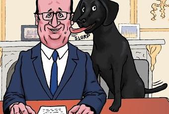 Une nouveauté, le Président n'est pas seul à présenter ses voeux. Il est accompagné de sa chienne de 3 mois dénommée Philae.